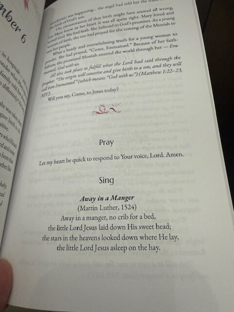 Journey alongside the beloved cast of Christmas–Mary, Joseph, the baby Jesus, the angels, and shepherds–as you explore timeless themes of hope, peace, and love. Each day offers a focused reading designed to prepare your heart during this season of waiting, concluding with sentence prayers and lines from cherished Christmas hymns.